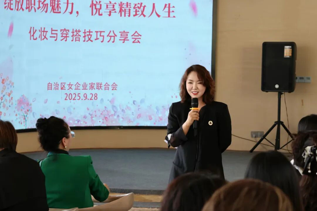 为助力女企业家提升形象管理能力,增强联合会凝聚力,9月28日下午,自治区女企业家联合会在胜天·如院开展“绽放职场魅力,悦享精致人生——化妆与穿搭技巧分享会”,女企业家会员们齐聚一堂,在专业指导与深度交流中,解锁形象管理新密码。