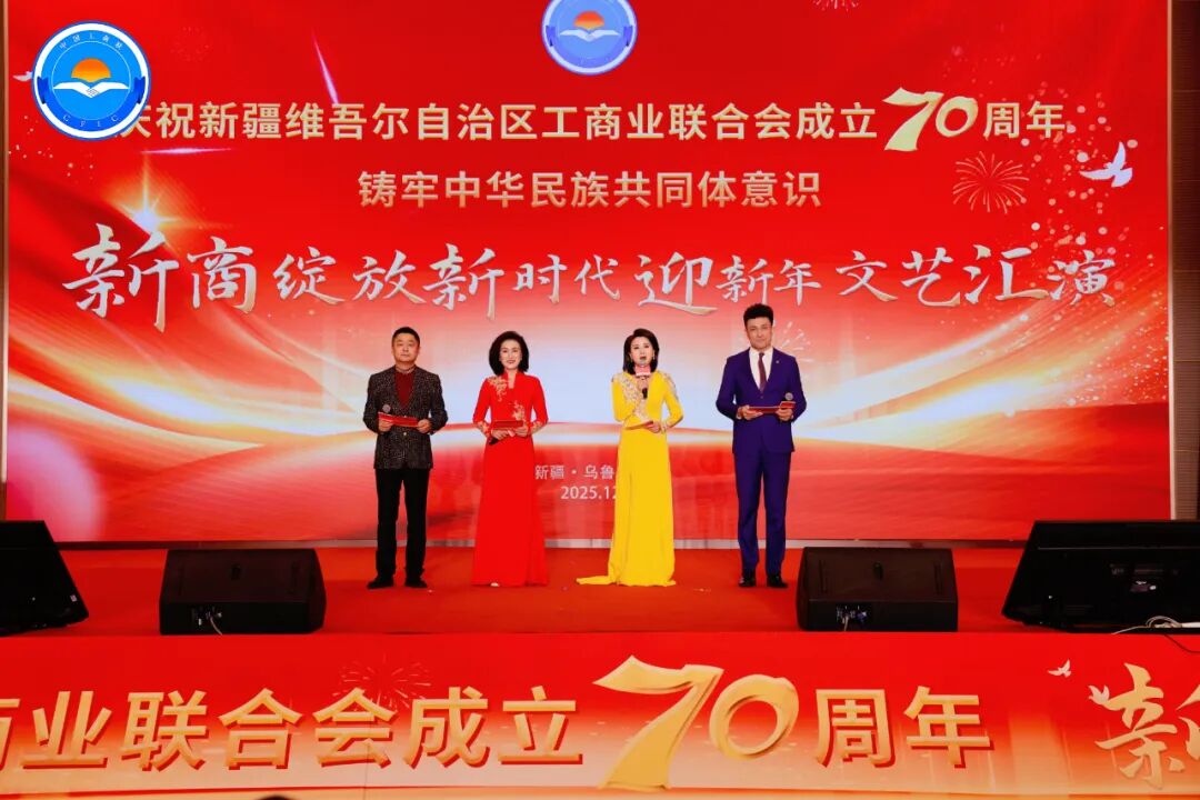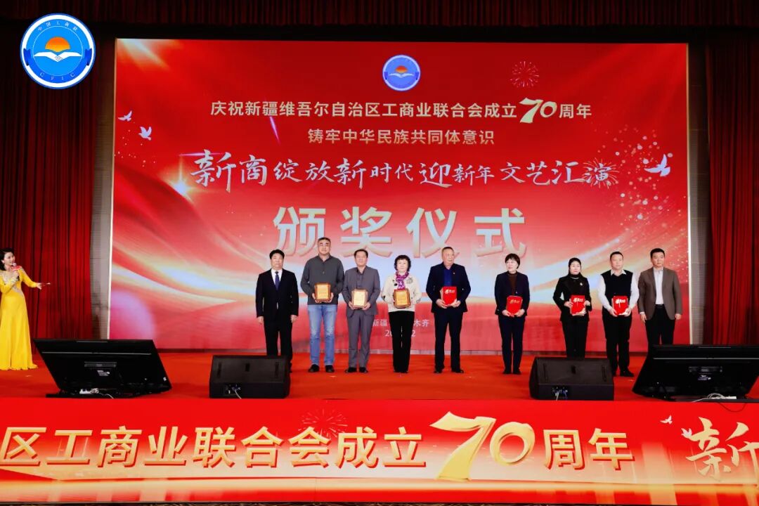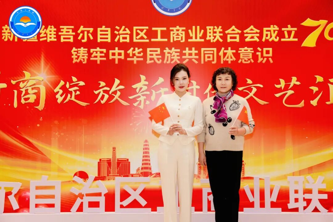 12月25日,庆祝新疆维吾尔自治区工商业联合会成立70周年“铸牢中华民族共同体意识 新商绽放新时代”迎新年文艺汇演在新疆迎宾馆精彩上演。活动生动展现了自治区工商联70年来的发展历程与新时代民营企业家风采。 自治区工商联执委、自治区工商联青年企业家委员会副主席、自治区女企业家联合会会长、新疆胜天投资集团有限公司党支部书记、董事长金琳琳,自治区女企业家联合会副会长、昌吉厚德家园老年生活公寓有限责任公司董事长张可秀出席活动并参加节目演出。