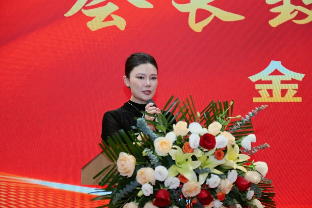 进入“绽放·同心”篇章,悠扬的小提琴演奏婉转流淌,全体会员手持小红旗共同唱响《我和我的祖国》,激昂的旋律中饱含着炽热的家国情怀。随后,金琳琳会长带领领导班子及全体副会长上台致祝酒词,大家举杯共庆过往辉煌成就,共期未来美好征程,现场氛围热烈而温馨。